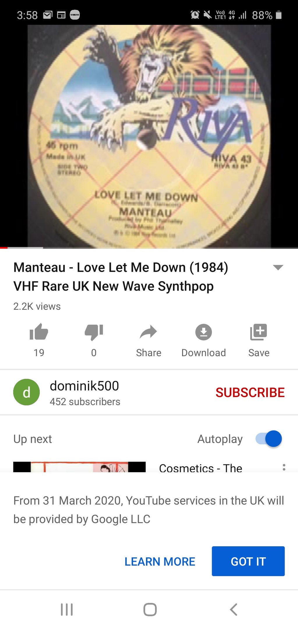 Just before I decided to retire from the music business at the grand old age of 30 I wrote and recorded two songs with an amazing singer from Liverpool called Ronnie Ellis who sounded a bit like Otis Redding. We recorded in a demo studio in Chelsea with a brilliant sound engineer called Doug who later became quite well known in the industry. I touted them round a bit but nobody was interested and to be honest my heart wasn't really in it ... however - when I listen to them today they still mean a lot and I think they are decent songs and productions.